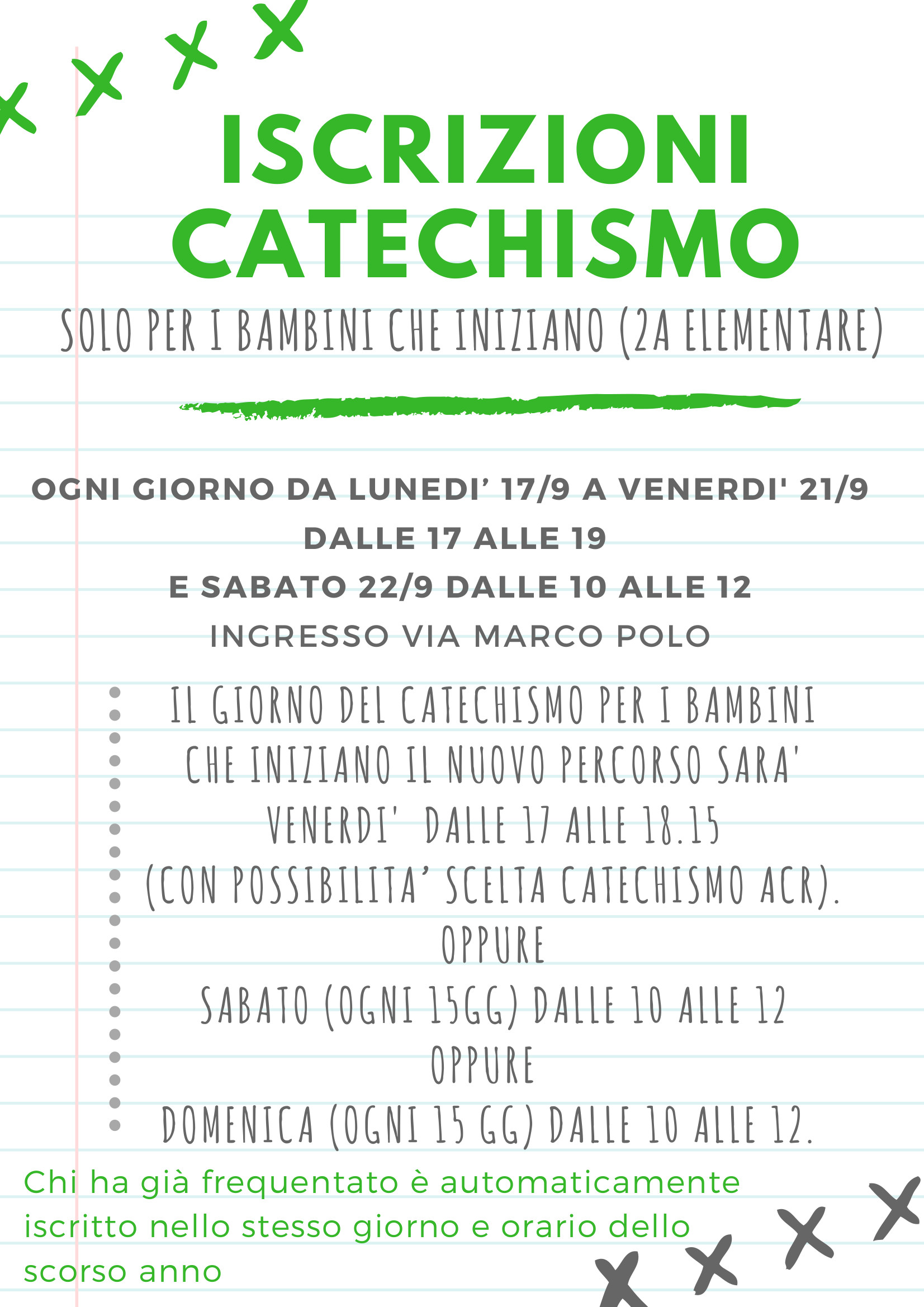 L'iscrizione deve essere fatta da un genitore a cui verranno illustrate le modalità del percorso di catechesi.